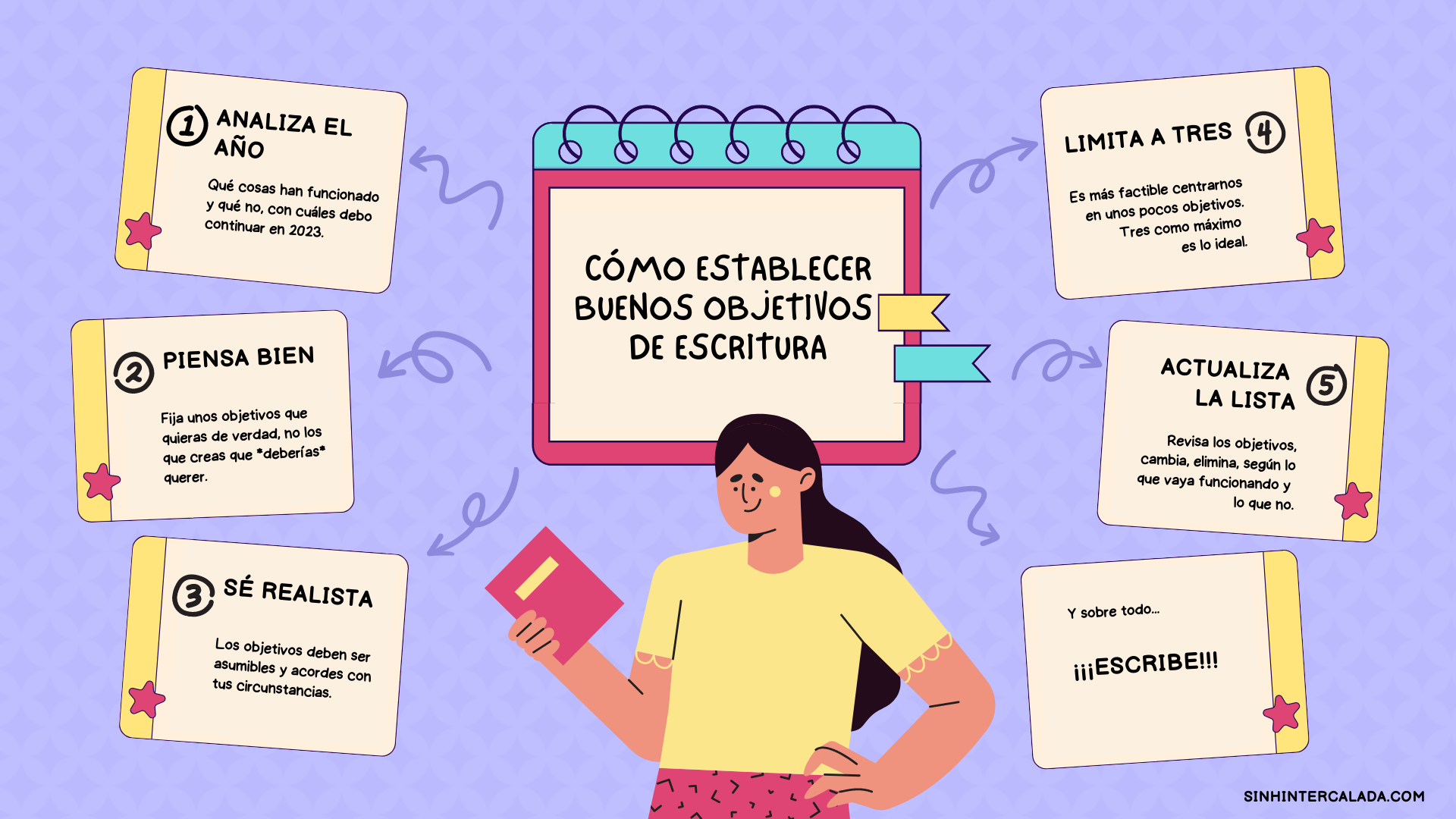 ¿Y cómo lo he hecho? Con lo que, para mí, es clave: siendo realista. ¡Pero no voy a adelantarme! Si quieres fijar unos buenos objetivos o propósitos para el nuevo año que te ayuden a desarrollar tu carrera de escritor, a continuación comparto contigo cinco consejos que te pueden venir bien a la hora de establecer tus objetivos de escritura para 2023. De escritura o de lo que tú quieras, claro.