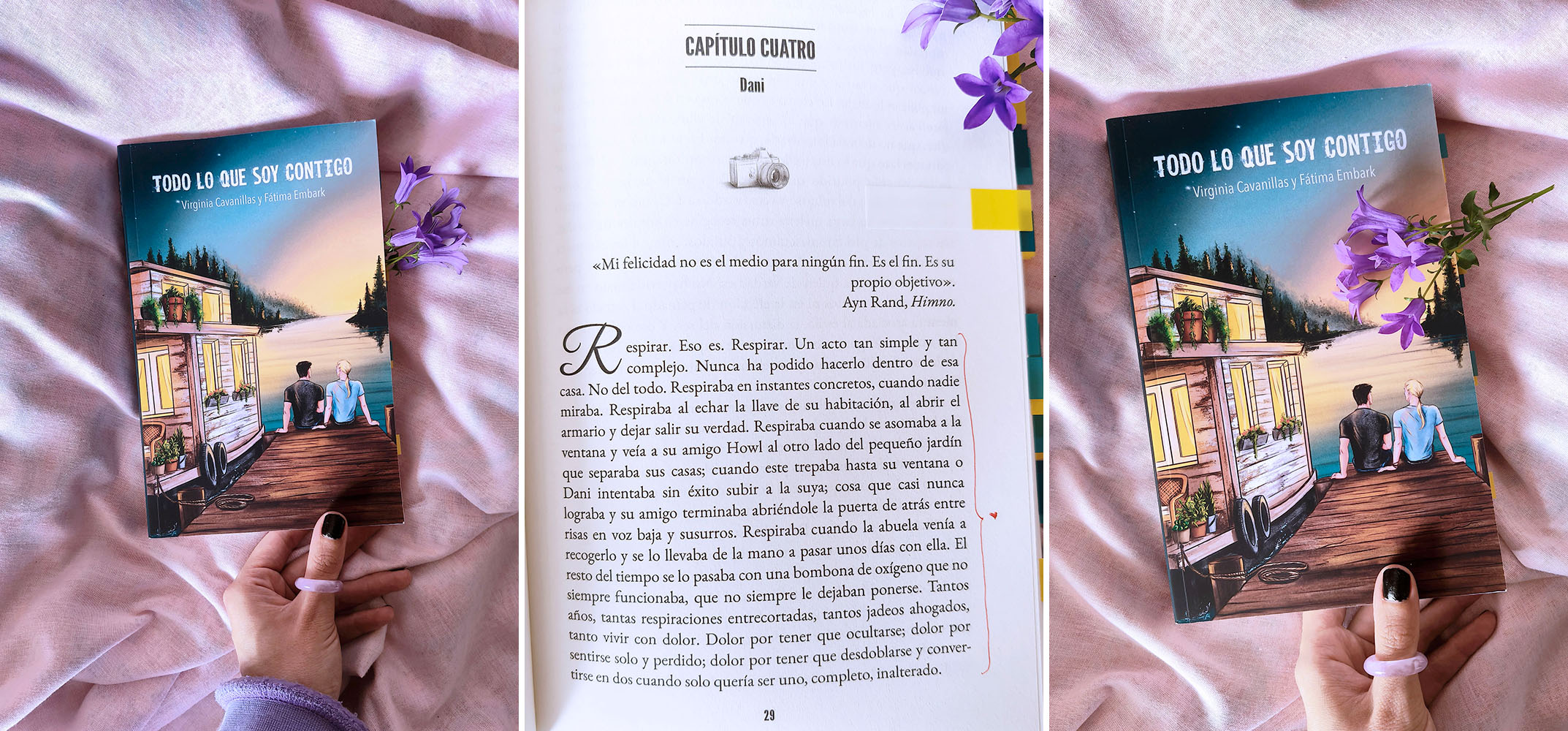 Con una narración intensa (en el mejor de los sentidos) y bellísima, las autoras consiguen meterte de lleno en la cabeza de Dani y de Taylor, en sus espirales de pensamientos, en su deseo por el otro, en sus momentos más oscuros pero también en esos luminosos. Hacía mucho que una novela no me hacía sentir tanto, que no me transmitía tanto. Se me ha encogido el corazón, he llorado y, sobre todo, los he querido mucho.